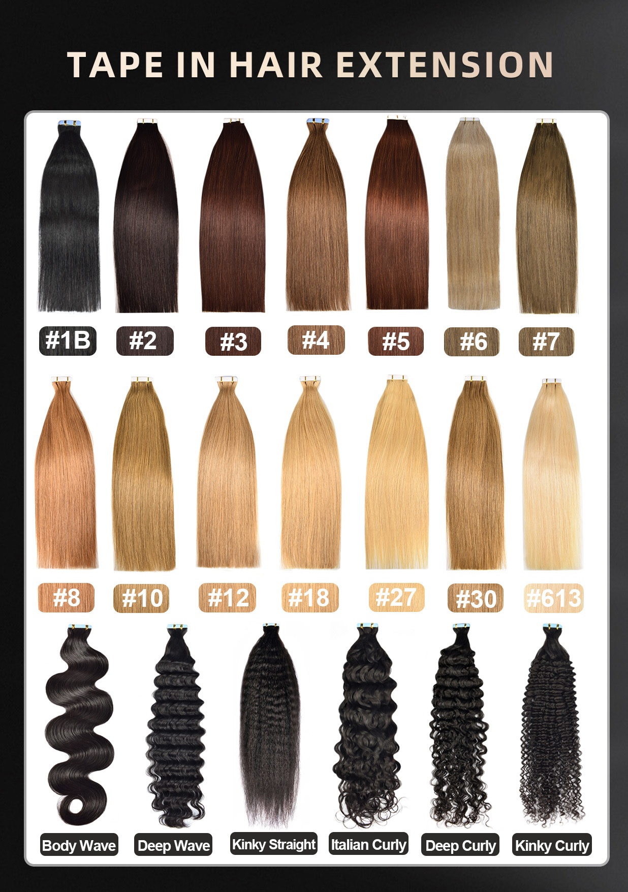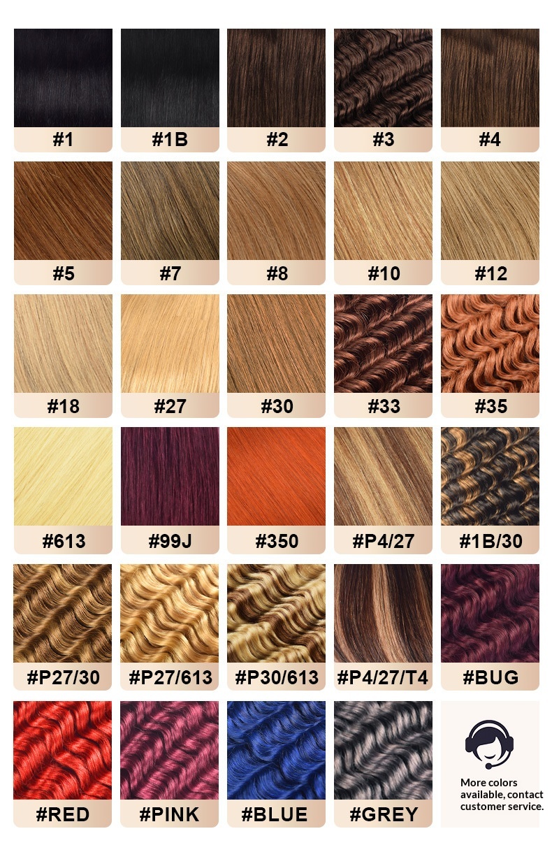 Colors: Kinky Straight, Straight, Body Wave, Deep Wave, Deep Curly, Italian Curly, Kinky Curly, Water Wave
